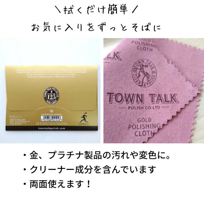 商品情報メーカータウントークTOWN TALK POLISH co.LTD.原産国:イギリス商品についてジュエリーポリッシュクロス(ゴールド・プラチナ磨き布)クリーニング成分と変色防止成分を含んだコットン製のジュエリー磨きクロス。
