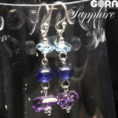 使用している石 ・サファイア(ボタン6mm) ・アメジスト(ランダムラフカット) ・ロイヤルスイスブルートパーズ(カットボタン6mm) 素材 シルバー925