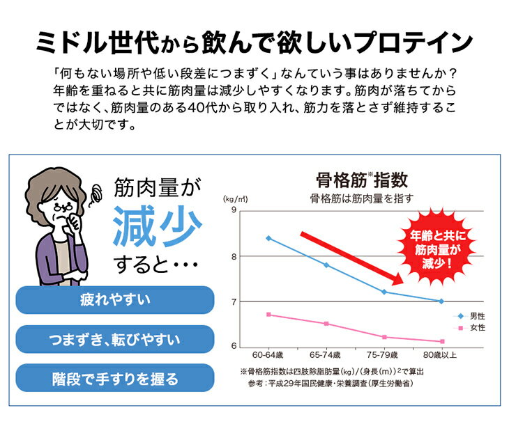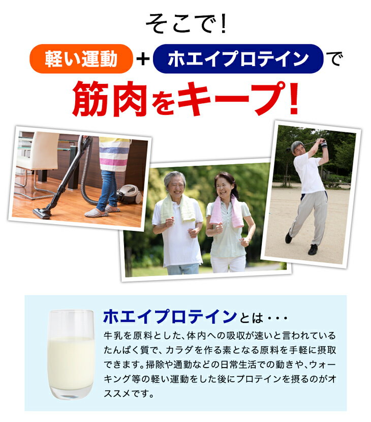 軽い運動+ホエイプロテインで筋肉をキープする、ミドル世代から飲んでほしいプロテイン。
