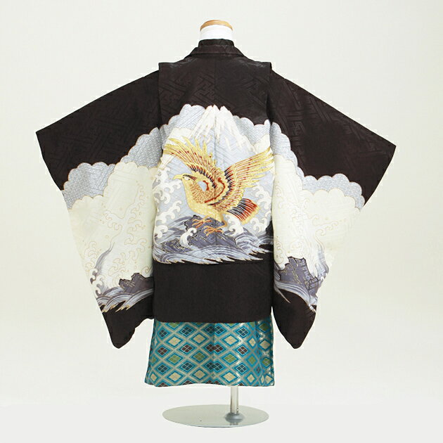 【 七五三 男の子 】 ■ 柄:富士・鷹 ■ 色:黒色 ■ 素材:日本製 高級ポリエステル100% ■ 身長:108cm〜112cm ※袴(はかま)の色・柄は、撮影用です。