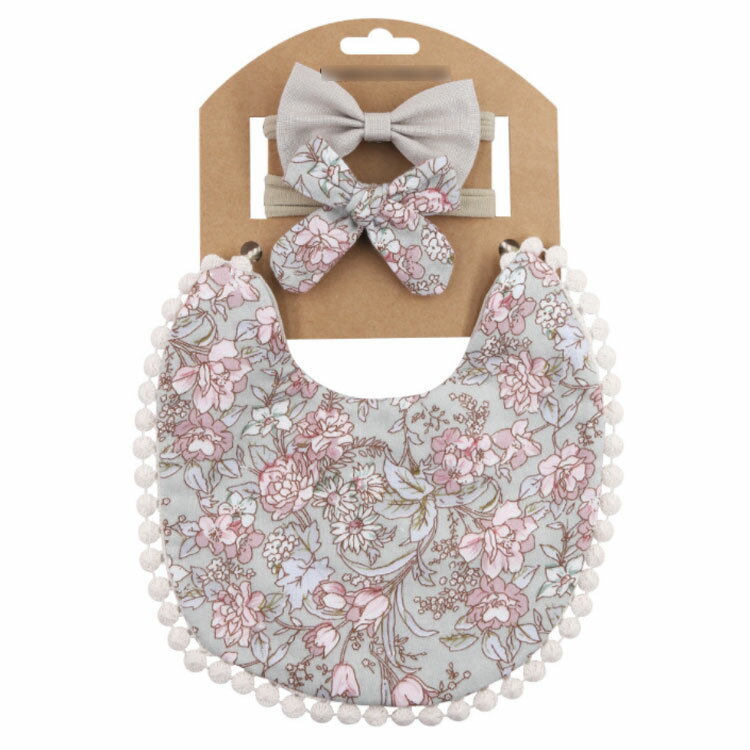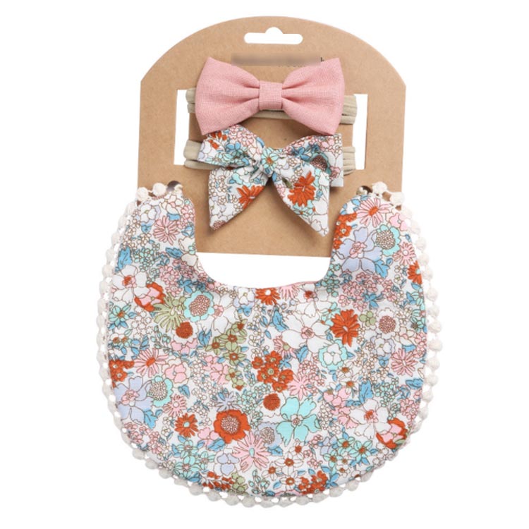 かわいいよだれかけとヘアリボンの3枚セット。