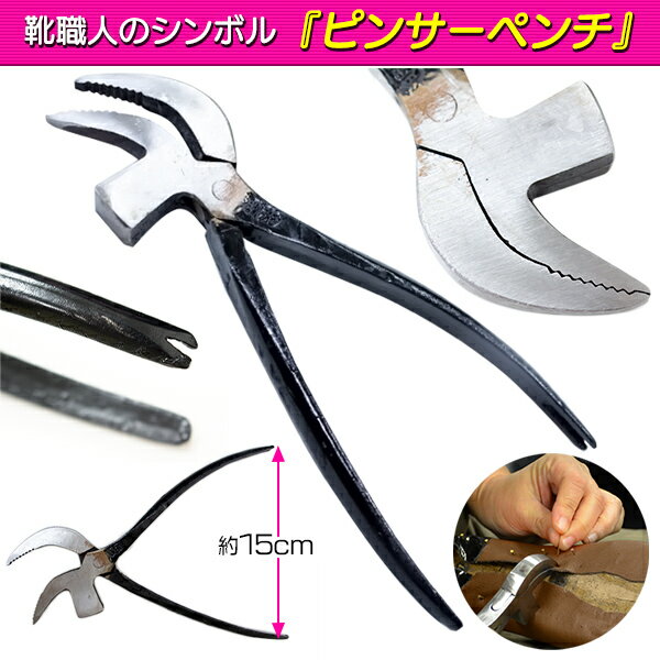 ペンチ部分で革をしっかりと掴み、突起部分は革を引っ張るときの土台として、力をかけやすく微調整しながら革張りができる構造となっています。